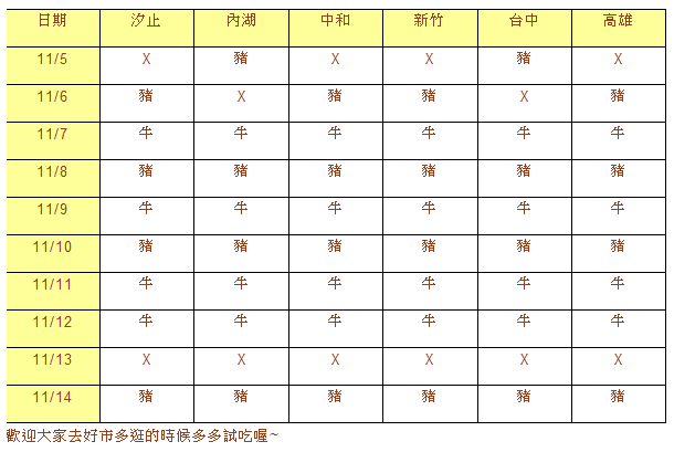 並請同步舉辦試吃活動,日期、地點及試吃口味如下表: