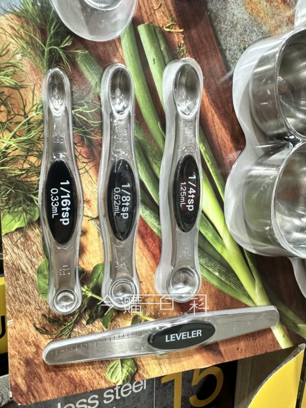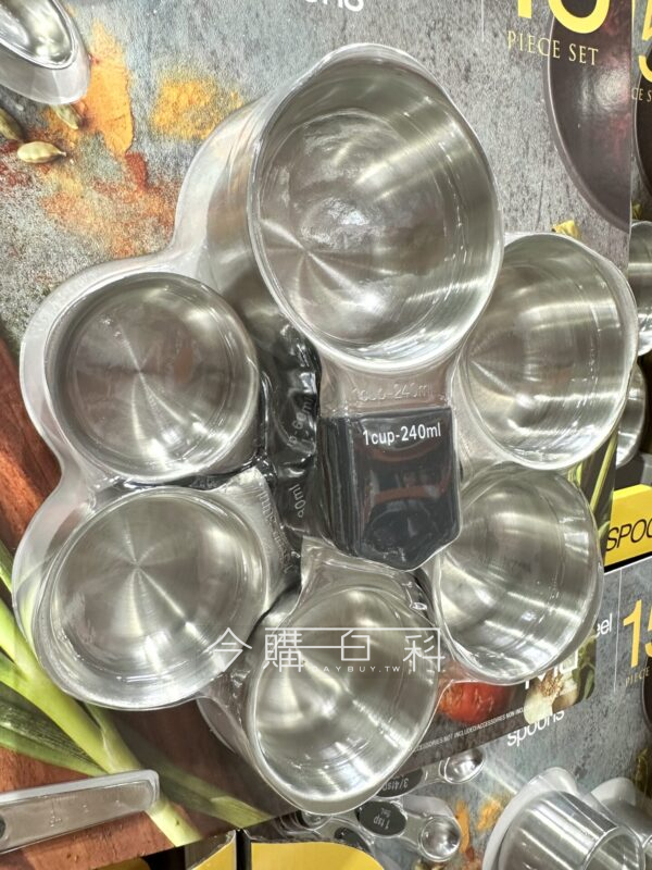 使用SUS304不鏽鋼製成,標準清晰容量準確,精細打磨方便清洗,每種尺寸各一件,含調平器。