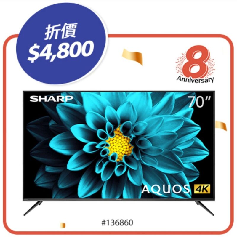 夏普 70吋 4K UHD Android 顯示器 不含視訊盒 4T-C70DK1X