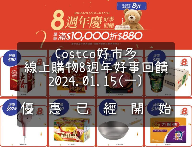 COSTCO好市多 本週限時隱藏優惠懶人包 2024 01.15(一)~01.21(日) – 昨天開始