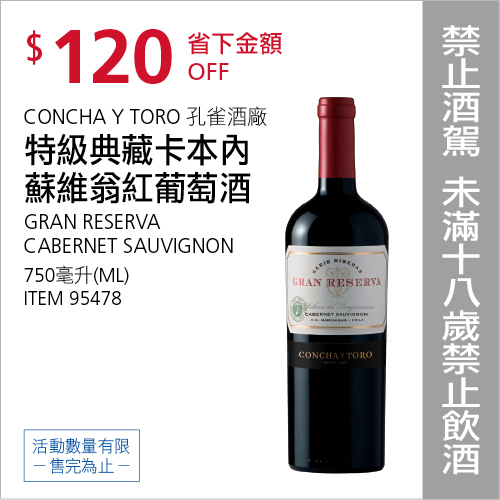 CONCHA Y TORO 孔雀特級典藏C.S.紅酒 #95478