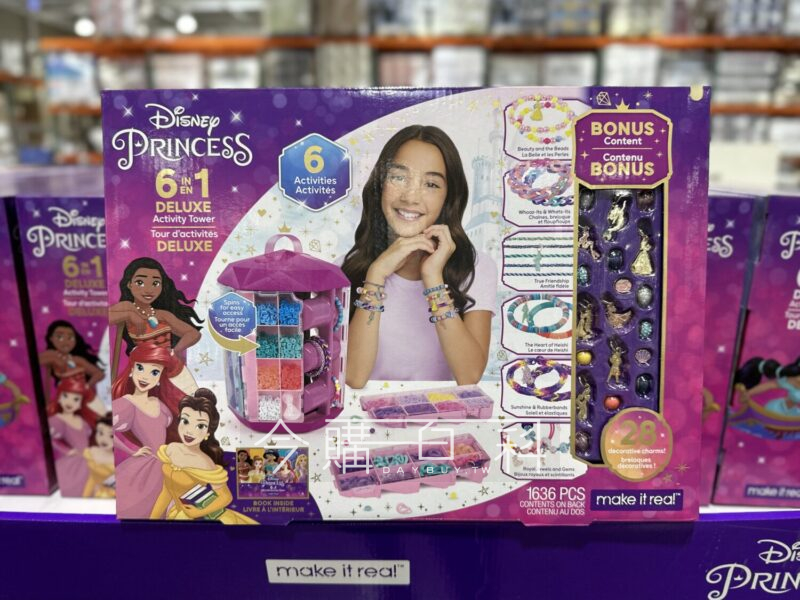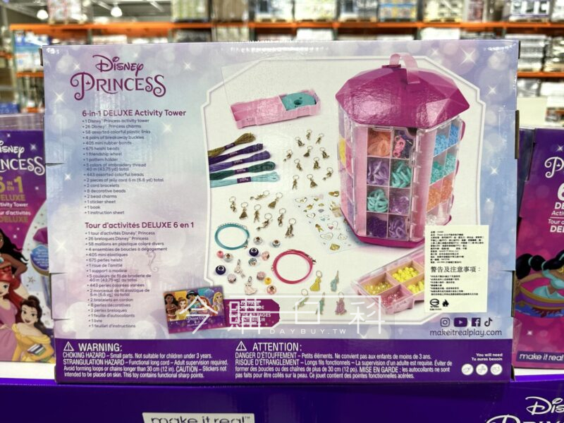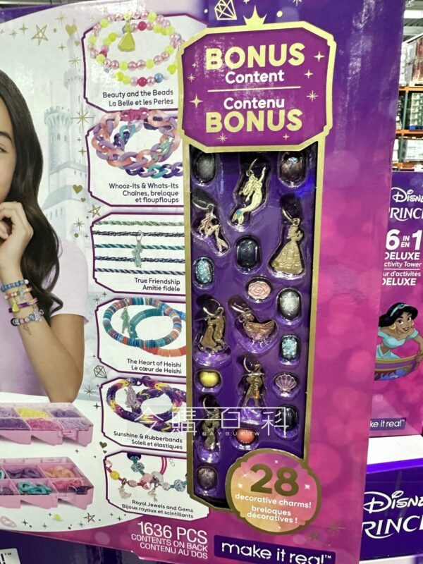 可做出六種手鏈編織方式,內附一個活動收納塔,可將所有零件收納分類,也可以收納編織好的手鏈,收納盒也可拆下來攜帶外出,依照說明書指引編織手鏈或發揮創意編織自己的特色,適用年齡:六歲以上。