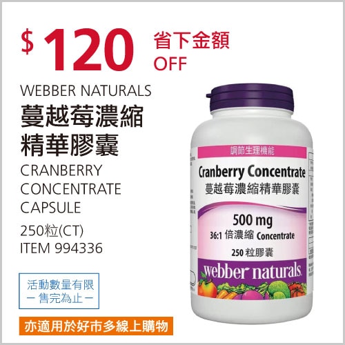 WEBBER NATURALS 蔓越莓濃縮精華膠囊 #994336