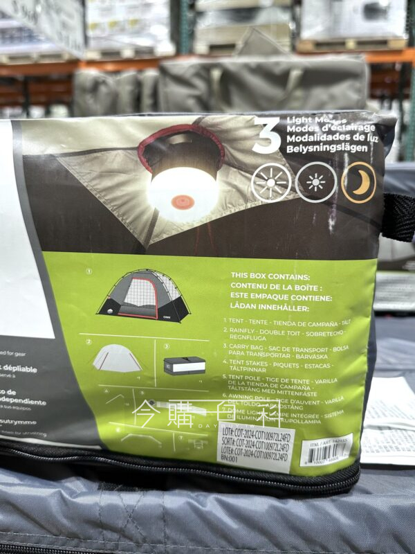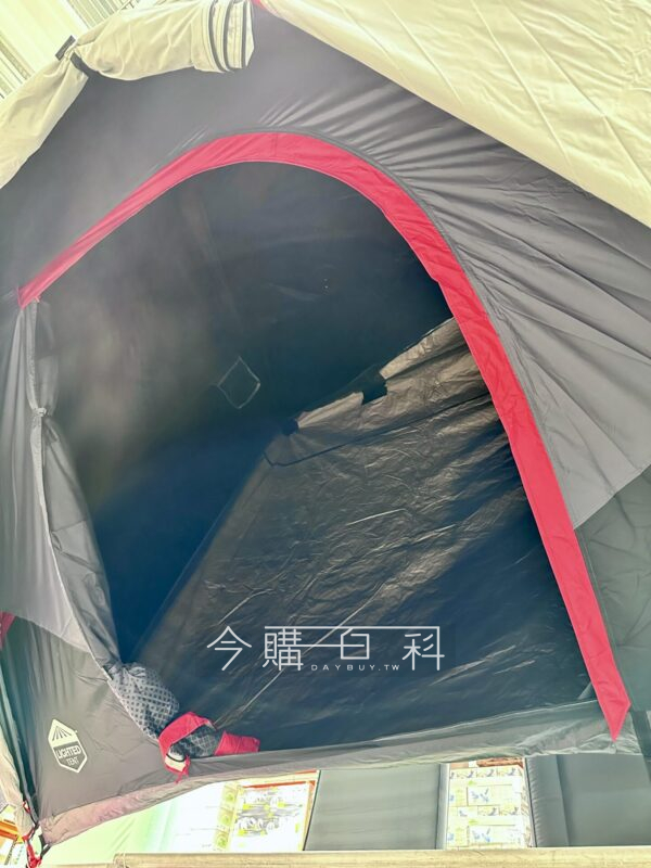 黑膠塗層可有效遮蔽光線,外帳及內帳耐水壓2000MM,額外儲藏空間可運用,內含LED燈(不含電池)。