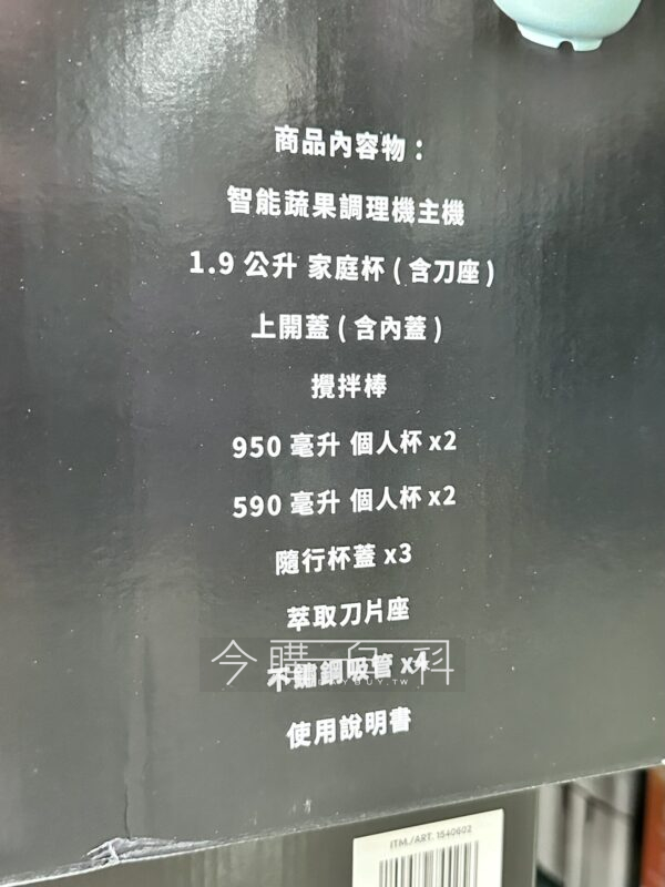 1500強勁馬達,智能偵測攪打模式,四種變速+四種料理模式,440C不鏽鋼刀片,堅固耐磨,食品級TRITAN防刮耐磨杯,內含1.9L家庭杯、攪拌棒、950/590ML隨行杯2入、不鏽鋼吸管*4。
