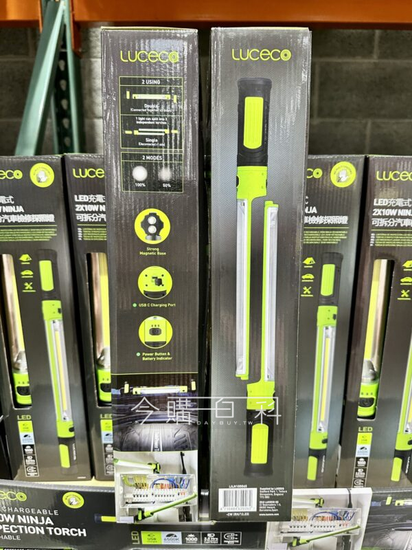 可拆分為二適用於各式情境,6500K日光燈色溫,LED電量顯示功能,滿電時可使用2.5小時,180度可旋轉磁鐵底座,1000流明強光輸出,電池過充保護機制,附1米USB-C充電線。