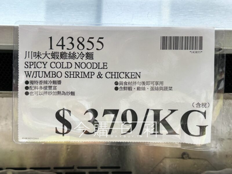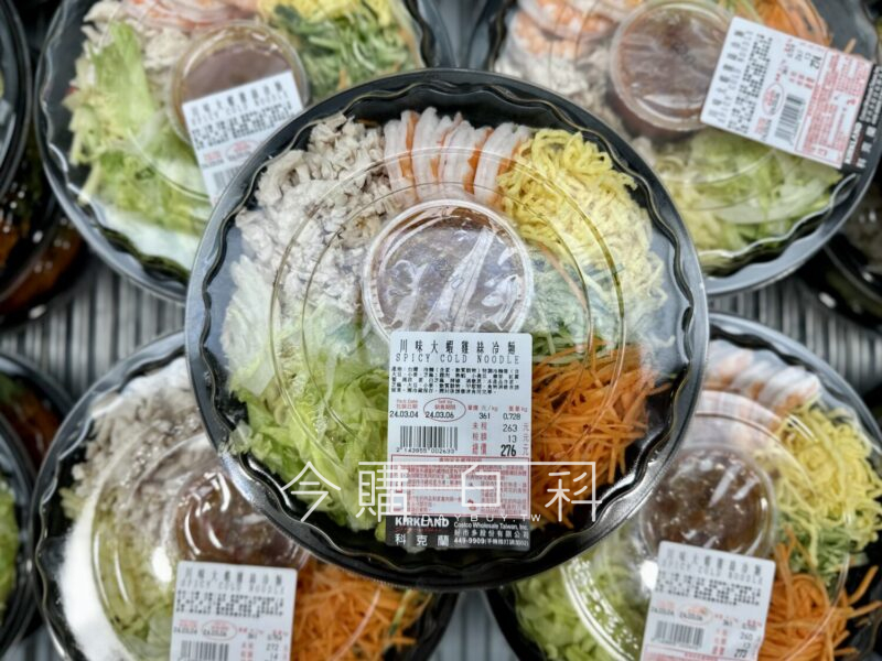 獨特香辣冷麵醬,配料多樣豐富,也可以拌炒加熱為炒麵,與食材拌勻後即可享用,含鮮蝦、雞絲、蛋絲與蔬菜。