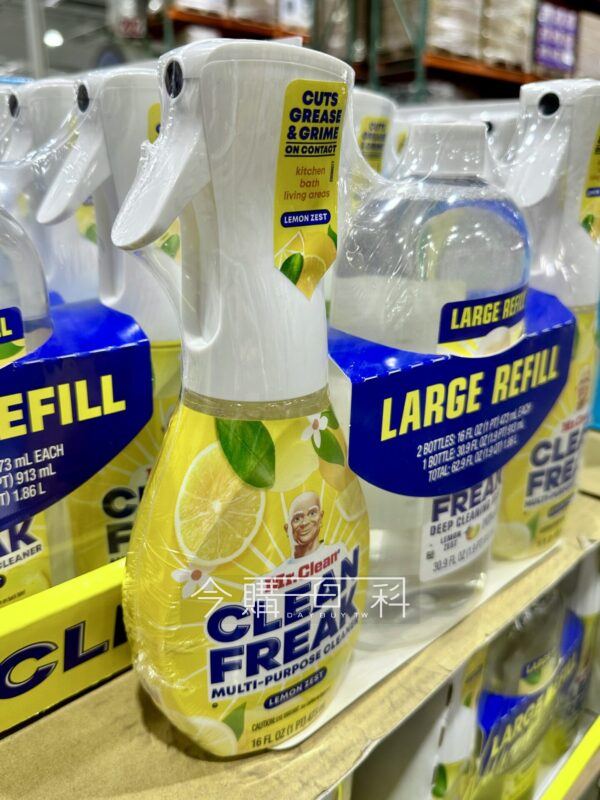 可清除頑固污垢和油脂,適合清理廚房檯面衛浴設備,可用於不鏽鋼、磁磚材質,清新檸檬皮香味,強力噴頭,噴霧覆蓋範圍廣,一噴即可清潔,輕鬆省力。