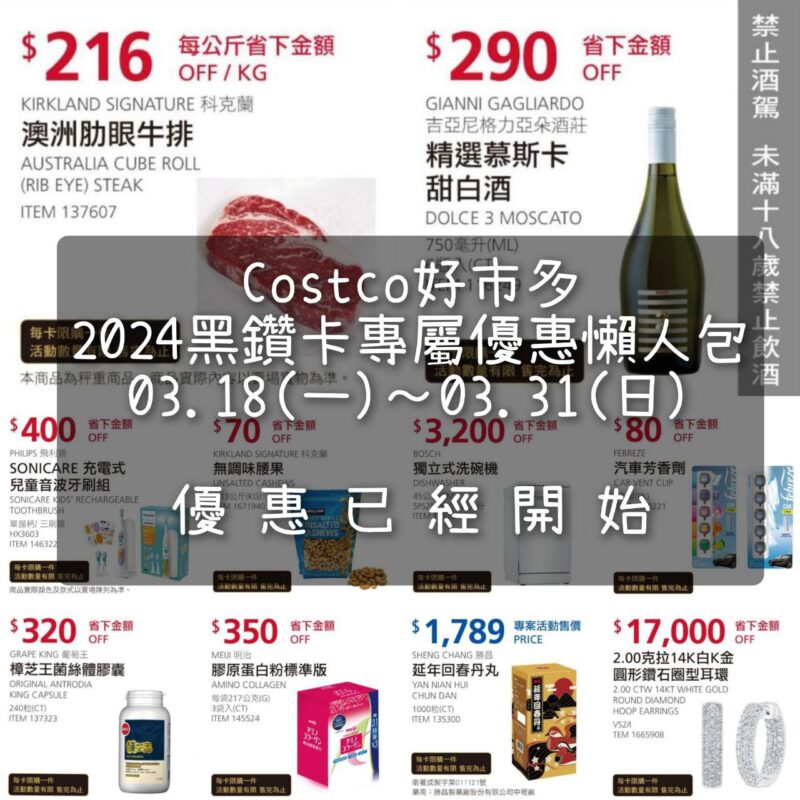 COSTCO好市多 黑鑽卡專屬優惠 價格懶人包 03.18(一)~03.31(日) – 已經開始