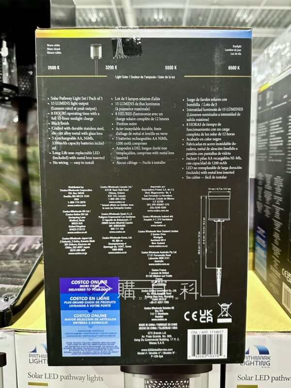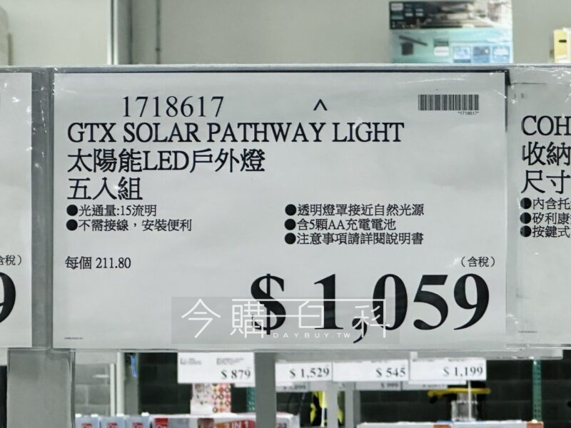 光通量:15流明,不需接線,安裝便利,透明燈罩接近自然光源,含5顆AA充電電池。