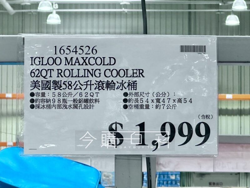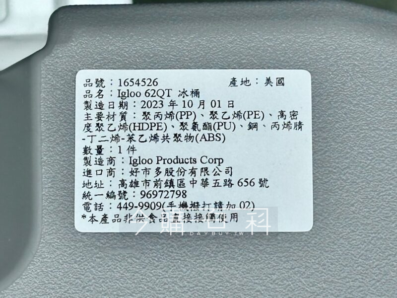 容量:58公升/62QT,約容納98瓶一般鋁罐飲料,採冰桶內部洩水閥孔設計。