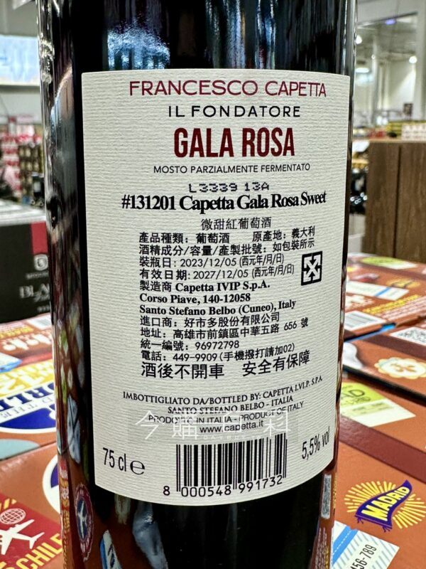義大利SOUTH PIEDMONT,有著濃郁花香和木質調花香,搭配黑莓與覆盆莓的風味,口感柔順細緻,甜而不膩,適合搭配甜點與帶有微微酸食物例如草莓和桃子等。