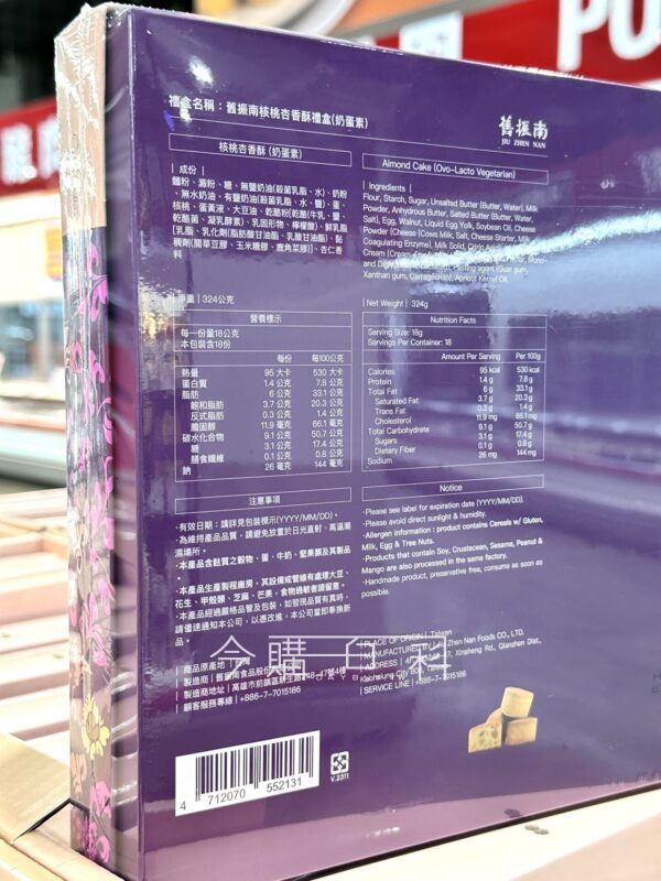 舊振南經典熱賣品項,濃郁奶香外皮香酥即化,富含營養價值的核桃點綴,以低溫慢火烘烤,奶蛋素,外酥內潤,滿口清新滋味,送禮大方、自用相宜。