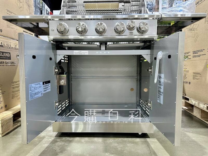 長145*寬64*高124CM,總燃燒功率為63000 BTU,18/10不鏽鋼烹飪區,電池供電LED旋鈕,內建紅外線頂部灼熱燃燒器,附烤爐防塵套。