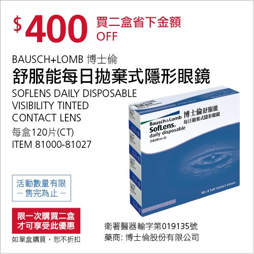 BAUSCH+LOMB 博士倫舒服能日拋隱形眼鏡 #81000-81027