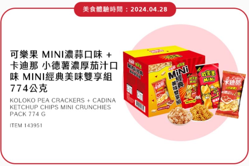 這下就更有誘因去賣場晃晃了,以下我們整理試吃商品的詳細情報,連結當中有最新的價格和商品照片提供網友參考,有喜歡就可以排時間去賣場把商品帶回家啦~