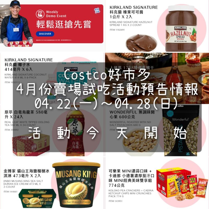 逛COSTCO好市多大賣場的一大樂趣大概就是試吃了,現在賣場連試吃活動都公告出來