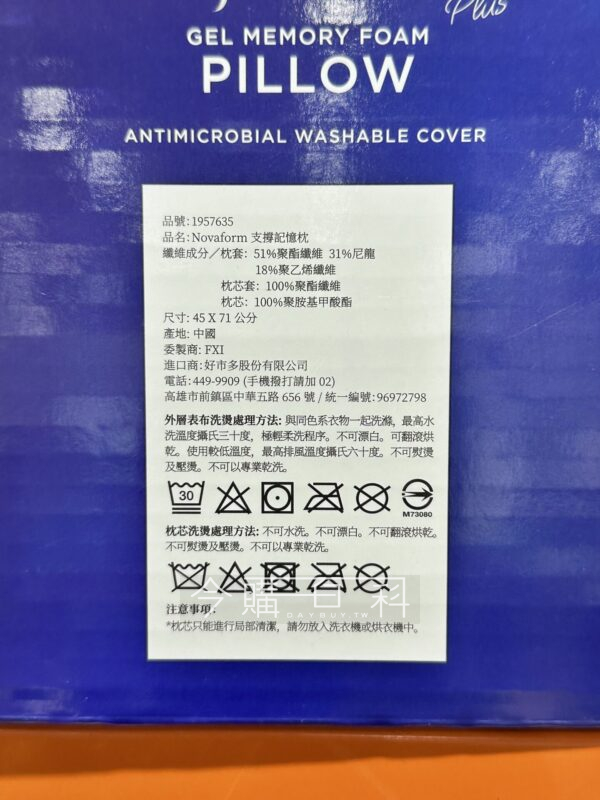 凝膠記憶棉舒適不悶熱,枕心高度適中回彈性佳,適合側睡提供良好支撐,枕套由涼感纖維製成,維持透氣乾爽,枕套可拆洗。