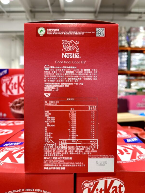 熟悉的奇巧牛奶威化巧克力,香濃可可爽脆滋味,可搭配牛奶、豆漿、燕麥飲,含全穀物營養,富含鈣質與膳食纖維。