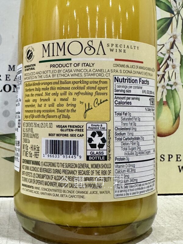 使用義大利氣泡酒作為基底,加入西西里新鮮血橙果汁,深邃黃色酒體散發出強烈活潑的氣息橙子味,建議冰鎮飲用。