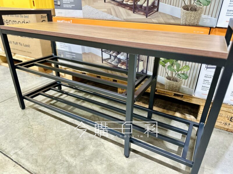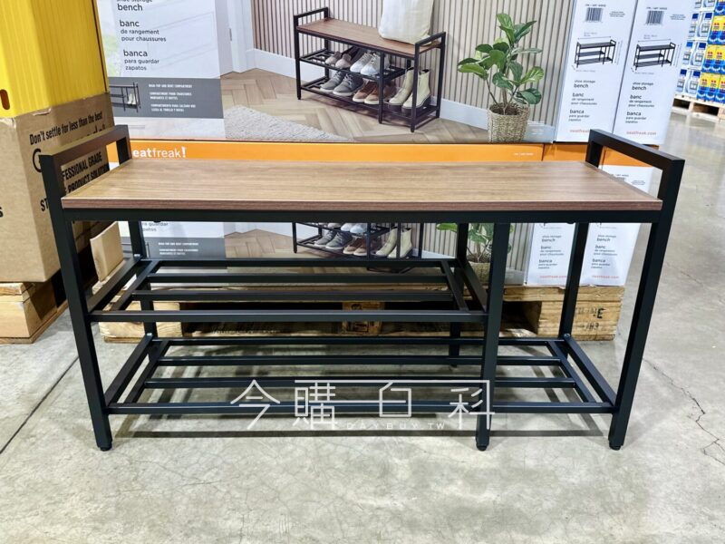 雙層黑色金屬層架堅固實用,胡桃木飾面座位,同時增加座位及儲存空間,亦可放長靴,適合放置於入口、走廊等。