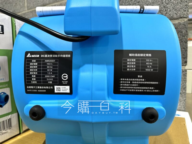 110V電壓適用,送風距離達10公尺,三段風量調整六段定時,DC直流變頻馬達,最長八小時定時顯示,側邊輔助延長電源插座。