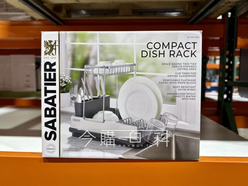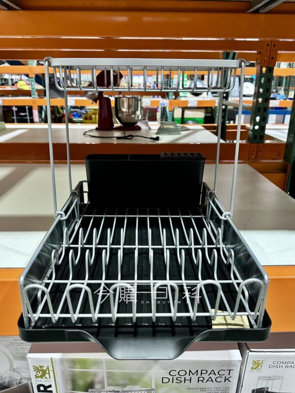 可拆式雙層餐具架,可拆卸排水盤,易於清潔,材質防生鏽,堅固實用,多種輪廓置物架增加實用性,適用於多種形狀及尺寸餐具,杯子可倒掛以防餐具刮傷。