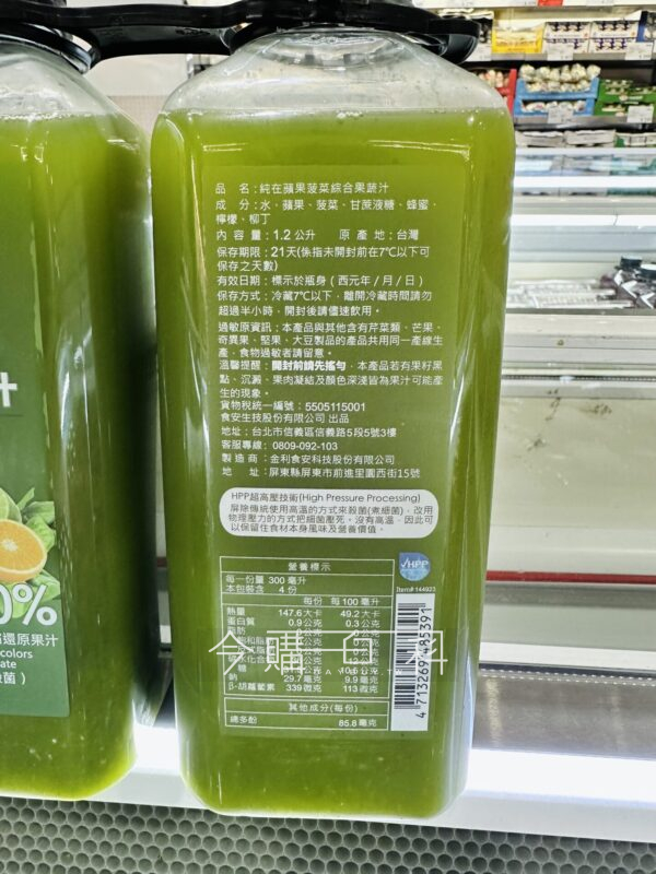 原汁含有率50%,使用高壓低溫殺菌,無添加人工香料與色素,使用非濃縮還原果汁。
