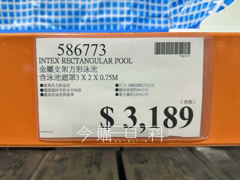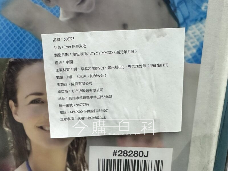 經典長方形泳池,需搭建於平坦水平地面,產品含泳池與遮罩。