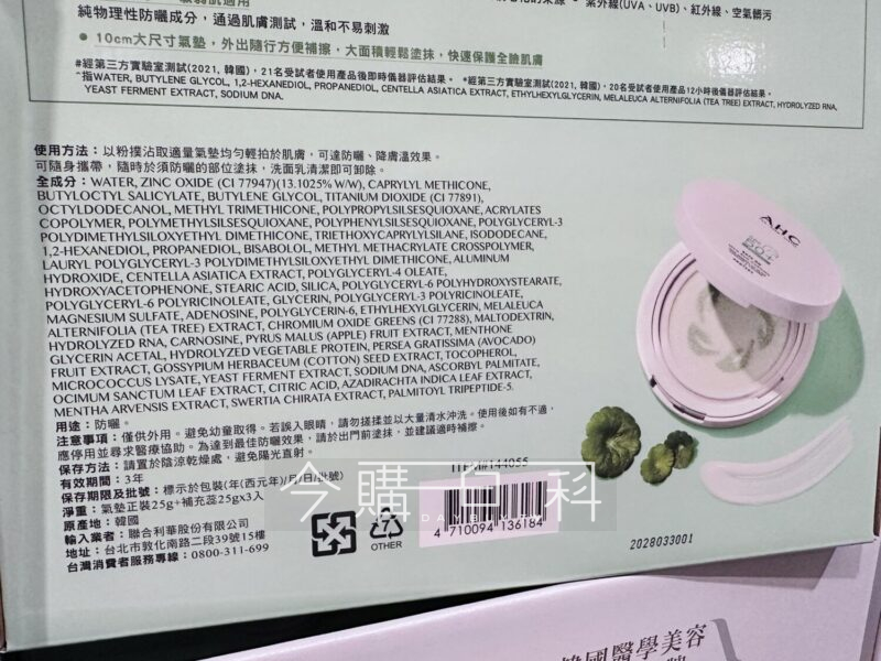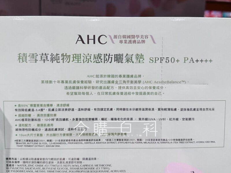 SPF50+ PA++++,含50%積雪草複合精華,溫和舒緩,有效鎮定肌膚,溫和純物理防曬成分,多重效抵禦曬黑、曬紅,韓國製造。