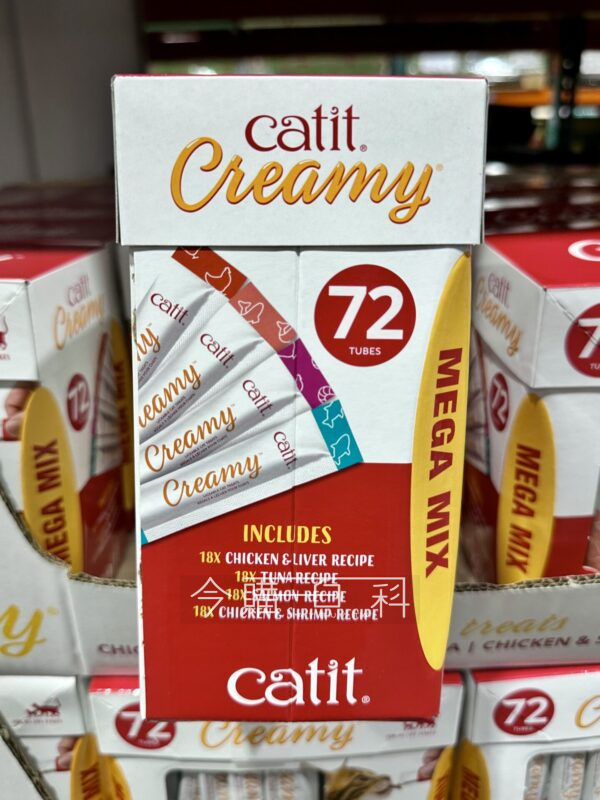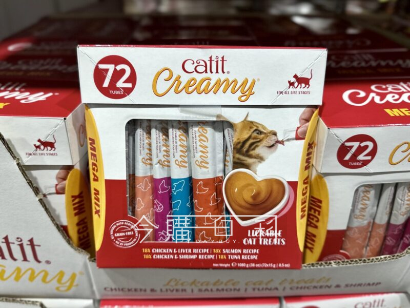含四種口味,各18入:雞肝、鮪魚、雞與蝦、鮭魚,天然成分,添加牛磺酸,不含人工香料、不含防腐劑,可冷凍製成肉泥冰棒。