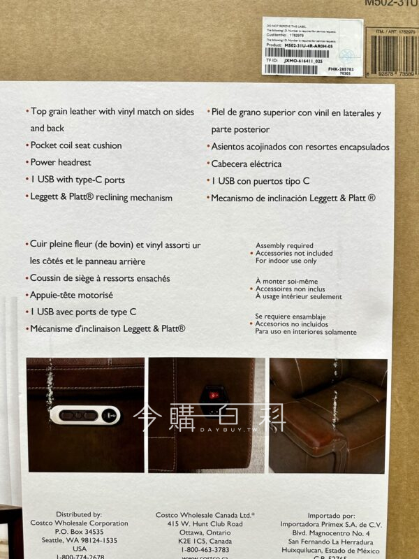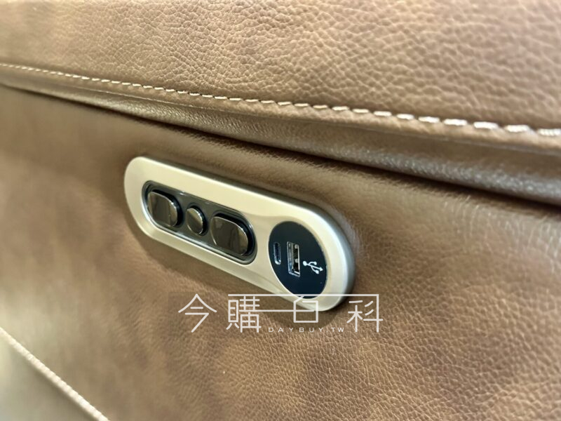 座椅表面採頭層牛皮,LEGGETT&PLATT傾斜系統,獨立筒彈簧支撐座墊,傾角開關含USB充電座。