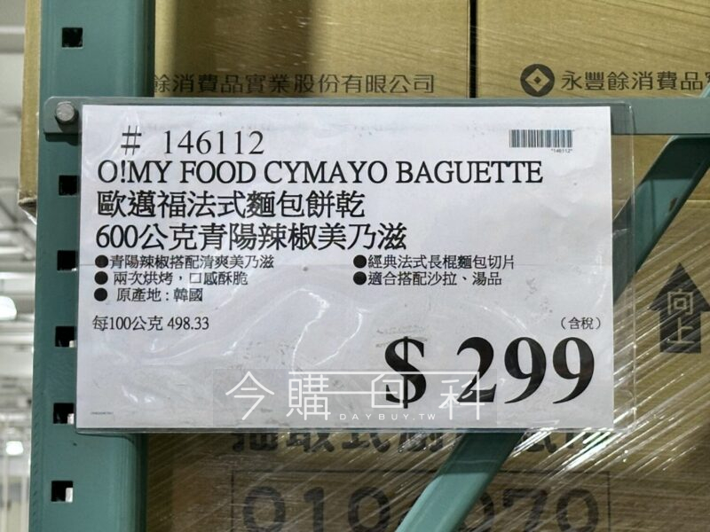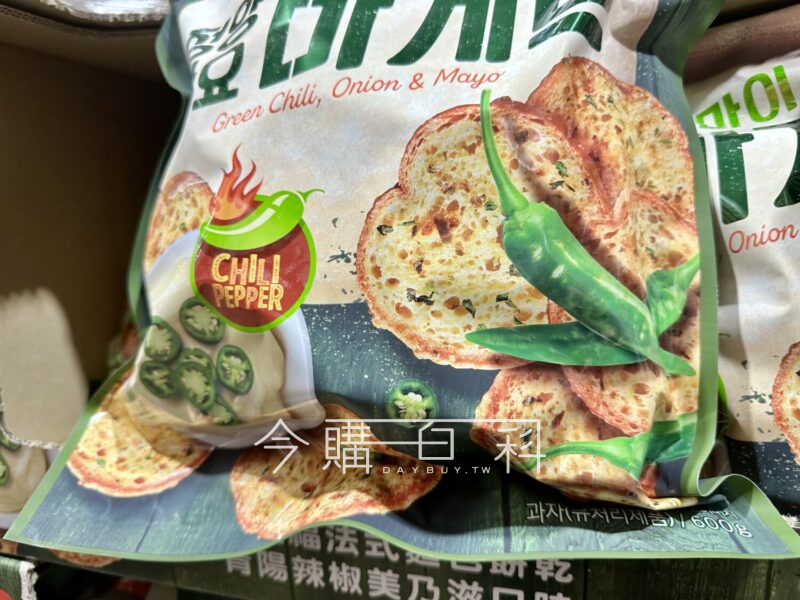 青陽辣椒搭配清爽美乃滋,兩次烘烤,口感酥脆,原產地:韓國,經典法式長棍麵包切片,適合搭配沙拉、湯品。