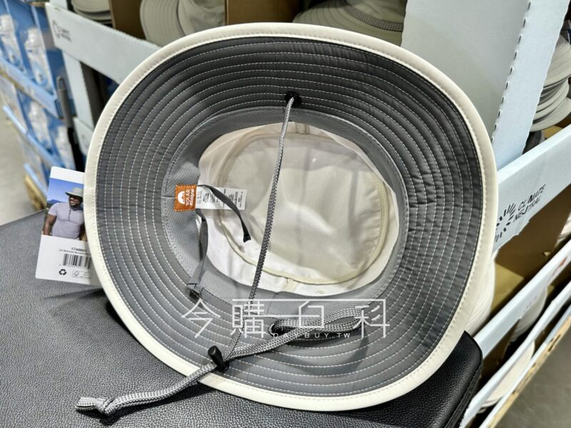 防UV、抗紫外線、UPF50+,內部可調節頭圍尺寸,可調式下巴繫帶長度,兩側通風孔洞設計,帽子內裡吸濕排汗布料。