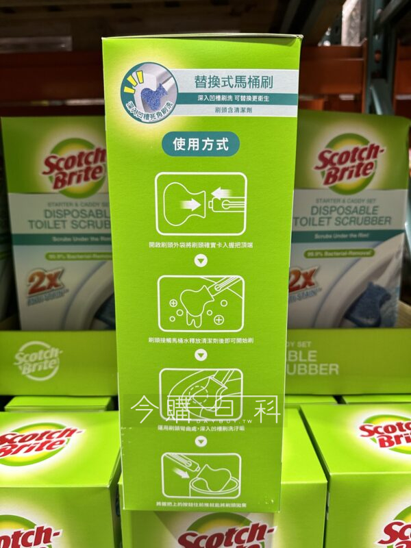 附24個清潔劑拋棄式刷頭,附底座,刷柄可直接收納,底座通風設計,不易積水,方便替換刷頭,輕鬆省力,S型細緻菜瓜布刷頭,補充刷頭可於線上購物購買。