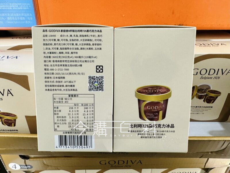 比利時72%黑巧克力冰品,濃郁可可加上黑巧克力脆片,讓味蕾充滿巧克力香味,每盒120毫升*4入,產地:日本。