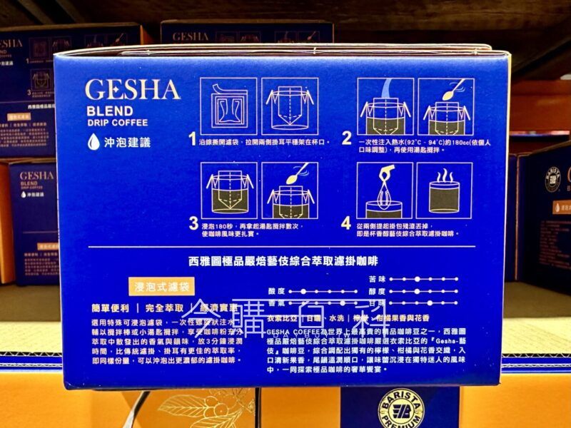 嚴選衣索比亞藝伎咖啡豆,綜合調配,帶有檸檬、柑橘及花香,層次豐富,白醇回甘,使用浸泡式濾袋,將咖啡風味完整釋放。