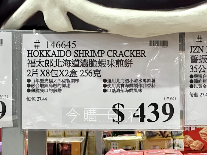 百年歷史福太郎秘製調味,融合蝦與烏賊的鮮甜,薄脆爽口的煎餅,選用北海道小清水馬鈴薯,使用真實海鮮製作非香料,口感濃郁海鮮風味。