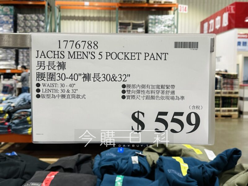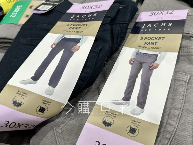 版型為中腰直筒款式,腰部內側有加寬鬆緊帶,雙向彈性布料穿著舒適。