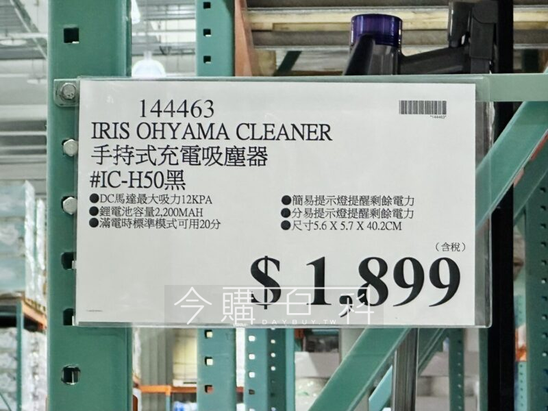 DC馬達最大吸力12KPA,鋰電池容量2,200MAH,滿電時標準模式可用20分,簡易提示燈提醒剩餘電力,尺寸5.6*5.7*40.2CM。