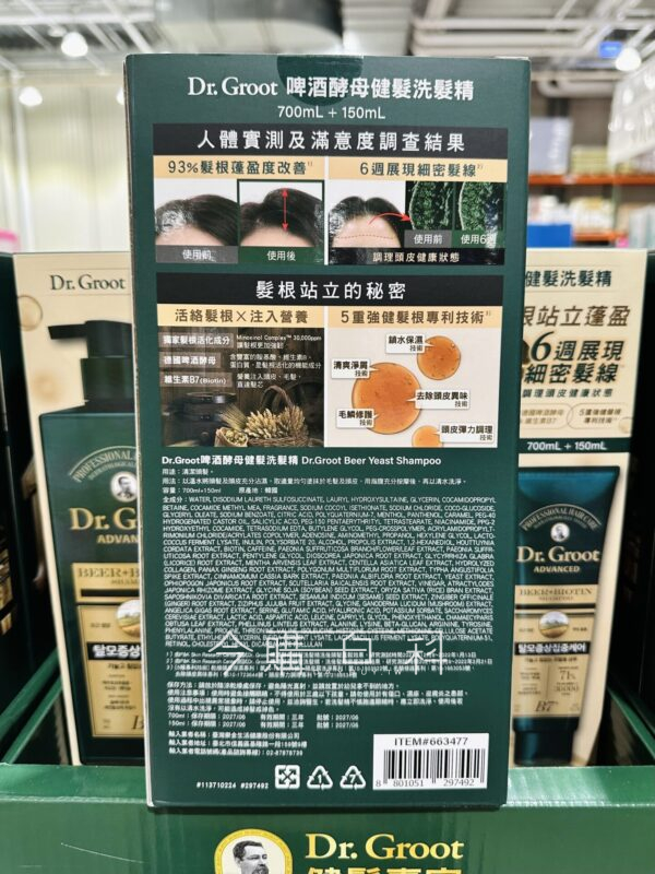德國啤酒酵母萃取,含胺基酸、維生素B,導入營養,提供髮根營養,5重強健髮根,調理健康頭皮狀態,幫助細密髮線。