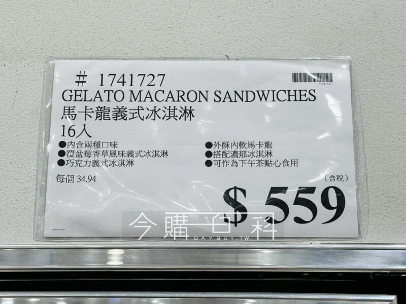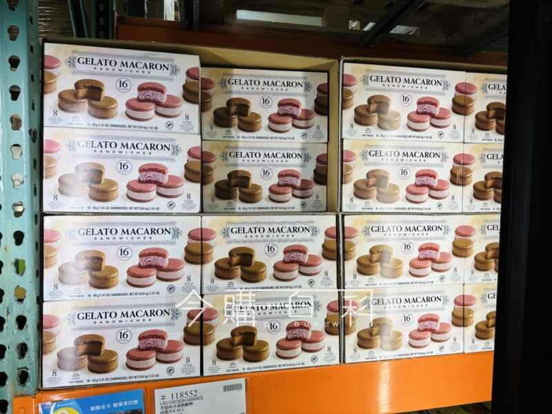 內含兩種口味:覆盆莓香草風味義式冰淇淋、巧克力義式冰淇淋,外酥內軟馬卡龍,搭配濃郁冰淇淋,可作為下午茶點心食用。