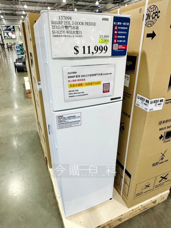 SHARP 253公升雙門冰箱 SJ-H25Y-WH #137098