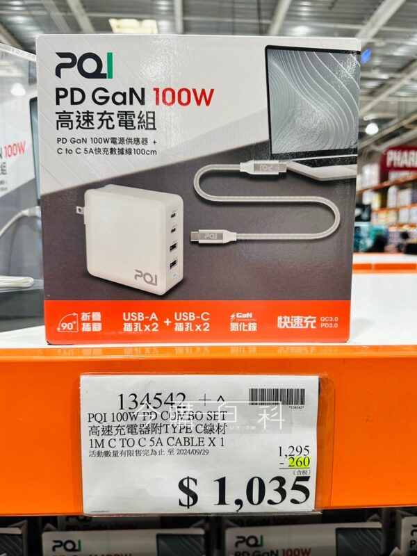 PQI 100W 高速充電器附 TYPE C 線材 #134542