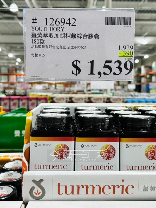 YOUTHEORY 薑黃萃取加胡椒鹼綜合膠囊 #126942