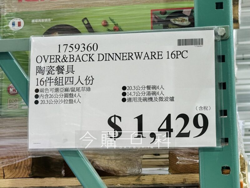 兩色可選亞麻/鼠尾草綠,內含26公分圓盤4入,20.3公分沙拉盤4入,20.3公分餐碗4入,14.7公分湯碗4入,適用洗碗機及微波爐。
