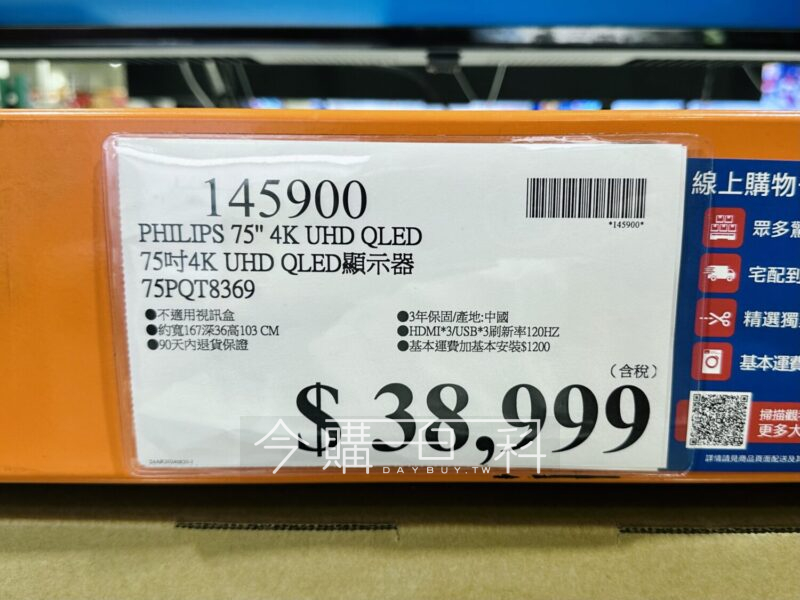 不適用視訊盒,約寬167深36高103CM,90天內退貨保證,3年保固/產地:中國,HDMI*3/USB*3,刷新率120HZ。