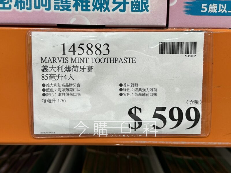 義大利知名品牌牙膏,香味對照:藍色-海洋薄荷味、銀色-潔白薄荷口味、綠色-經典強力薄荷、紫色-茉莉薄荷口味。
