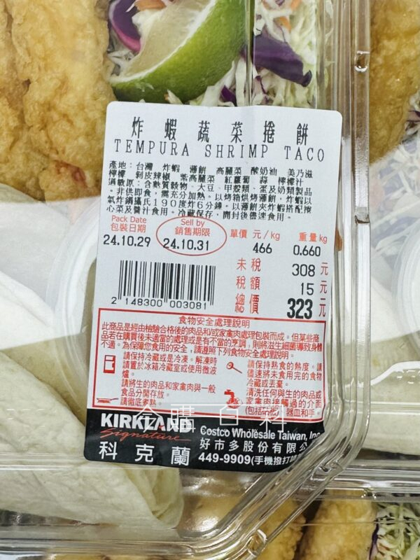 獨特去尾天婦羅炸蝦,佐特調剝皮辣椒酸奶油醬,烘烤或氣炸加熱即可上桌,原味薄餅搭配捲心菜絲,口味濃郁不膩口。