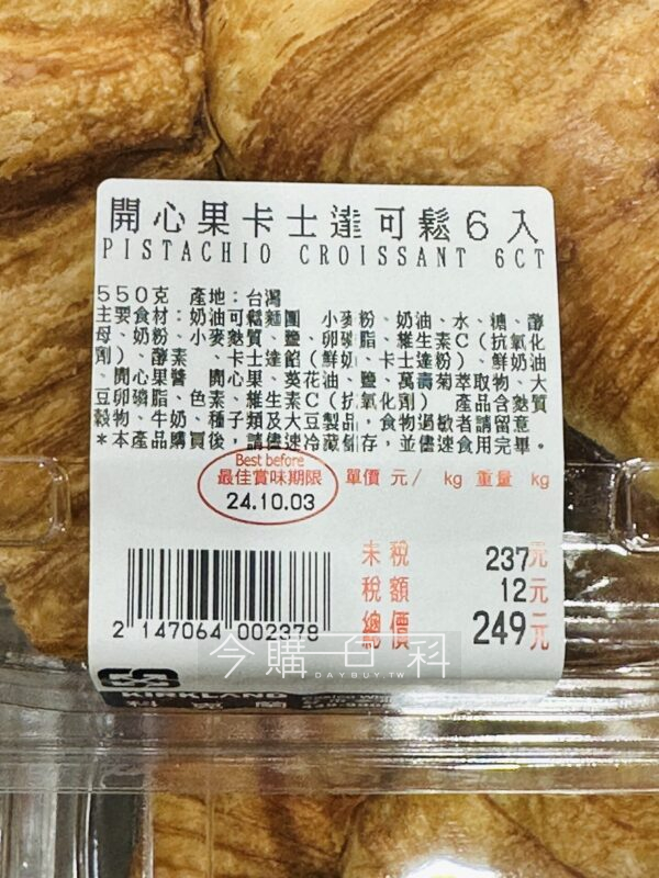 使用法國麵粉24.9%奶油堆疊出層次分明的可鬆麵包,使用義大利進口開心果醬製作的卡士達夾心內餡,本產品購買後請冷藏保存。